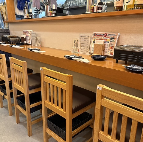 【お一人様・サク飲み歓迎!】お仕事帰りの一杯やデートにも最適なカウンター席。目の前のコンロで自分好みに焼き上げる贅沢な時間を過ごせます。コースなしの単品注文スタイルなので、お好きな海鮮と自慢の「飲み放題」で自由に楽しむのが正解!活気ある厨房の熱気を感じながら、至福のひとときを。