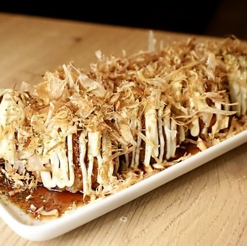 ひとつひとつ丁寧に焼き上げるたこ焼きは、外はカリッ、中はふわふわの食感が自慢です。特製の自家製ソースをたっぷりつければ、お酒のつまみにも、しっかり食べたい時にもぴったりの食べ応え抜群な逸品に!テイクアウトも可能ですので、ご自宅用にもおすすめです。バリエーション豊富な自慢のたこ焼きを囲んで盛り上がりましょう!