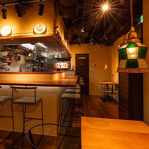 オシャレな空間には、お一人様でも気軽に立ち寄れるカウンター席や、グループでゆったり寛げるソファー席をご用意しております。お席の間隔も広く取られており、落ち着いた空気感の中でリラックスしてお食事を楽しめるのが自慢です。都会の真ん中にありながら、日常を忘れてゆっくりと過ごせる大人の隠れ家のような場所となっております。
