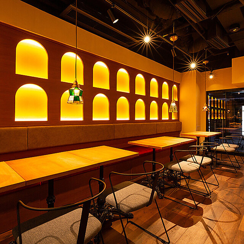 お一人様でも気兼ねなく立ち寄れるスタイリッシュなカウンター席や、グループでゆったりと腰を落ち着けられるソファー席を完備してます。お席の感覚も広く取られているためプライベートな会話を楽しみながら快適にお過ごしいただけます。落ち着いたデザインの家具が配された内装はどこを切り取ってもフォトジェニック!