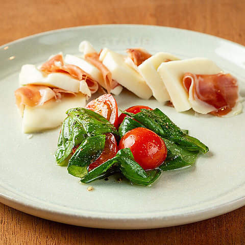 Jamon Serrano & Caprese(スペイン産の生ハム「ハモンセラーノ」と、トマトとモッツァレラを合わせたカプレーゼサラダ)