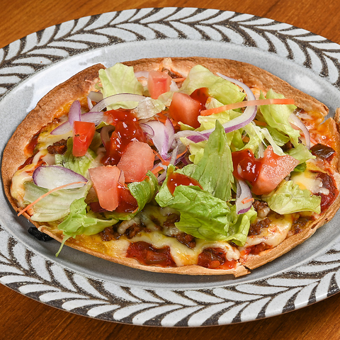 タコスピザはピリッとしたスパイシーさがクセになる一品。カリッと焼き上げた生地に、ジューシーなひき肉や新鮮な野菜がたっぷり。チーズがとろけて、香ばしい香りが食欲をそそります。ビールやワインと一緒に楽しめば、パーティーの主役に。お酒が進み、みんなで笑顔になれる美味しさです。ぜひ、一口食べてみてください♪