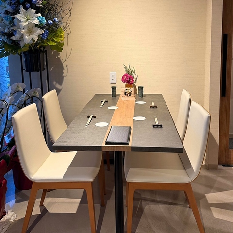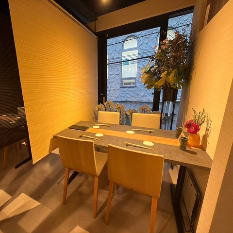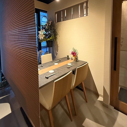 少人数に最適なテーブル席は、プライベート感を確保するためのスクリーン仕切りを備えています。落ち着いた照明と上質な木の温もりが感じられる空間で、ゆったりと食事を楽しめるので、仕事帰りやデートにもぴったり◎都会の喧騒を忘れさせる心安らぐ時間をご提供します。