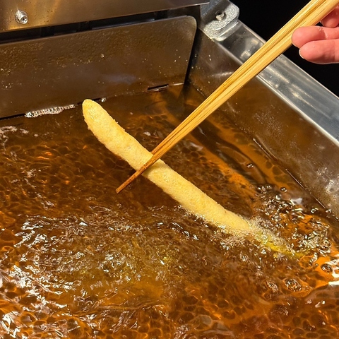 四季折々の新鮮な旬食材を使用した串揚げは、一本ずつ丁寧に衣をまとわせサックサクに揚げています