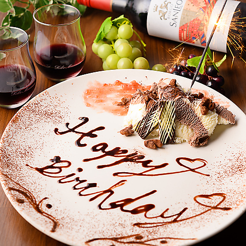 誕生日などお祝いシーンには当店からもサプライズを♪無料でデザートプレートをプレゼントしております!
