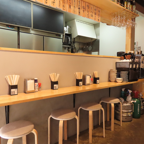 【一人飲みも歓迎のアットホーム席】6席のカウンター席は、仕事帰りのサク飲みに最適。店主との会話を楽しみながら、日本酒と肴をゆったり味わえます。少人数利用や一人飲みでも居心地の良い空間です。