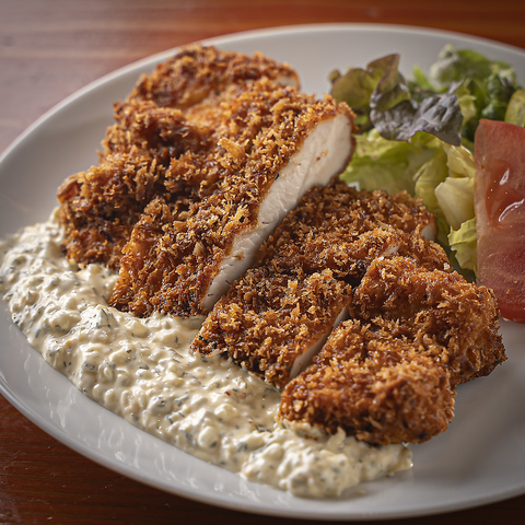 【濃厚な卵の味は手作りならでは】ジューシーな鶏肉の美味しさを引き立てるため、奈良のブランド卵を使った手造りのタルタルソースを添えました。
