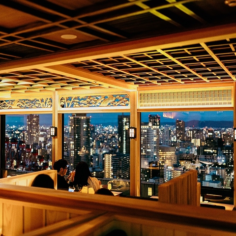 【地上100mから眺める絶景は、ムードも抜群♪】当店では、大阪の美しい夜景を様々な席からお楽しみいただけます。極限までこだわり抜いた当店自慢の絶品料理と全国各地から厳選した様々なお酒を一緒に味わいながら、贅沢なひとときをお過ごしください。夜景とともに、特別な時間をお楽しみいただけること間違いなしです♪