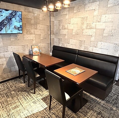 ゆったりと座れる4名様用のテーブル席を2卓完備しております♪ご友人同士の集まりや、ご家族での団らんランチにぴったりなお席です◎広めのスペースを確保しており、小さなお子様連れのお客様もリラックスしてお食事を楽しめます。窓から入る自然光が心地よい開放的な席で、こだわりの本格カレーをご賞味ください♪