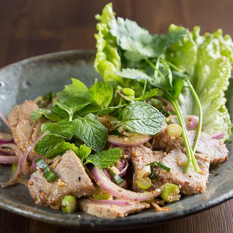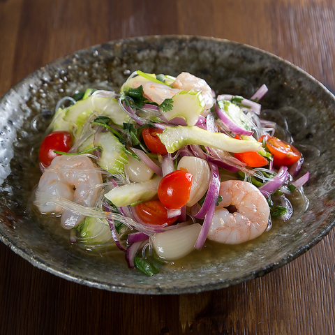 大きめのエビをカラッと揚げ、タイの甘辛いスイートチリソースをたっぷり絡めた一皿は、プリッとした食感と濃厚な旨みが弾ける魅力満点の料理。甘さの中にほどよい辛みと酸味が広がり、食欲をそそる香りと後引く味わいがやみつきに。タイらしい華やかさを気軽に楽しめる満足度の高い一品◎≪2,050円(税込)≫