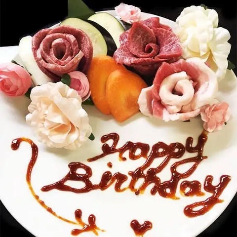 大切な記念日を華やかに彩る“肉の花束バースデープレート”。丁寧にカットされたお肉が一輪ずつ花のように咲き誇り、サプライズで贈ればその場が一気に笑顔に包まれます。色とりどりの野菜と組み合わせた美しい盛り付けは、写真映えも抜群。誕生日や記念日、特別な日の演出にぴったり!大切な人へ想いを伝える、忘れられない一夜をぜひ。