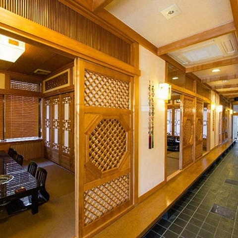 木の質感を活かした落ち着きある空間は、訪れるだけで心が安らぐ上質な雰囲気。広々としたテーブル席はグループ利用にも最適で、仕切りを活かしたレイアウトはプライベート感も確保。壁面の鮮やかな絵画が韓国の伝統美を添え、特別な時間を演出します。ゆっくりと美味しい焼肉を楽しみたい方に寄り添う、寛ぎの時間が流れる店内です。