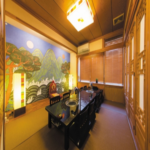 韓国の伝統を思わせる華やかな壁画と、温かみある木のインテリアが調和した心地よい店内。自然光が差し込む明るい空間で、ゆったりと焼肉を楽しめます。個室なので、周囲を気にせず会話が弾むのも魅力。女子会や記念日、接待、少人数~大人数宴会まで幅広く対応し、さまざまなシーンをより特別な時間へと彩ります。