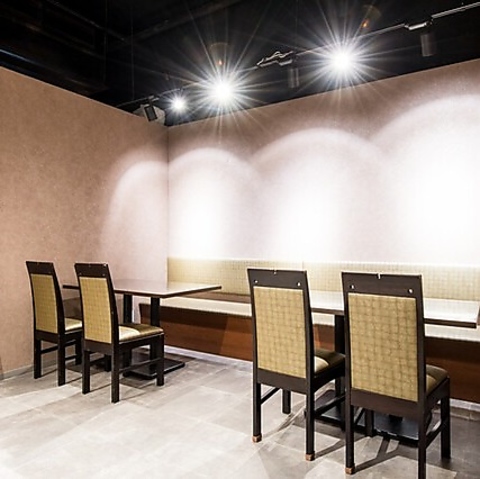 シックな色調のインテリアと、スポットライトが美しく壁を照らすモダンなフロア。広々とした空間に配置されたテーブル席は、女子会やビジネスランチなど、少し背筋を伸ばしたい特別な日の食事にぴったりです◎洗練された大人の雰囲気漂う店内で、職人が一つひとつ丁寧に作り上げる点心の数々を心ゆくまでご堪能ください。