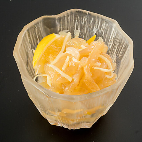 【しゃぶ山特製】肉厚のクラゲにしっかり味付けした酸味のきいた一品