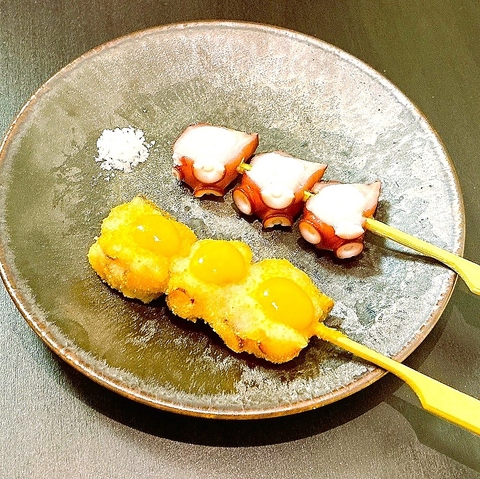 当店の串揚げはすべて、小麦を使わない「米粉」を使用。吸油率が低いため、胃もたれしにくく、素材の旨味をダイレクトに味わえます。一本一本、揚げ温度にも細心の注意を払い、プロの技で仕上げる串はまさに絶品。美容や健康を気にする方にも安心してお腹いっぱい楽しんでいただけるよう、こだわり抜いています。