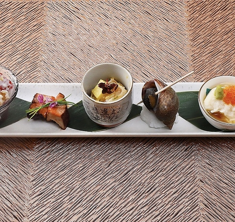 5,500円(税込)の「京魚コース」は旬素材を活かした繊細な創作和食の数々が並ぶ魅力的なコース★和モダンな雰囲気の中で、大切な方との時間を特別に彩ります!構成は季節感に富み、一皿ごとに素材の持つ香りと食感を丁寧に引き立てています☆おもてなしにも最適な満足度の高い内容です♪