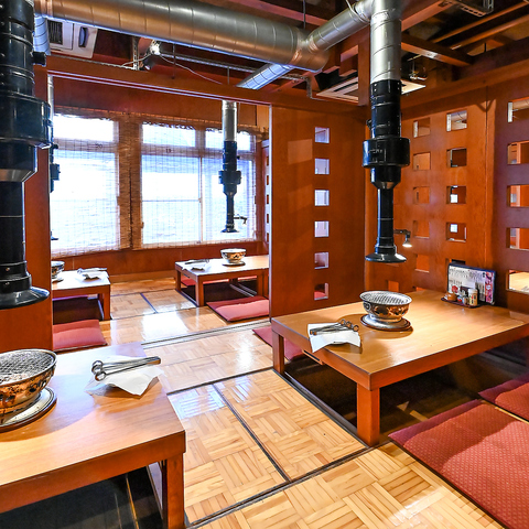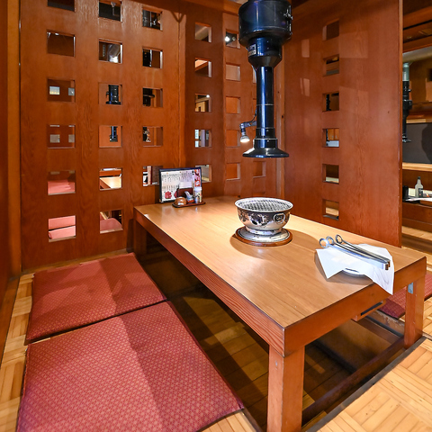 友人やご家族での落ち着いた時間に最適な掘りごたつ席やテーブル席をご用意☆アットホームな雰囲気の中で焼肉をお楽しみいただけます。隣席とのほどよい距離感で、会話と食事に集中できる空間づくりを行っています◎女性の方やお子様連れでも快適に過ごしていただけるよう工夫を凝らしています!