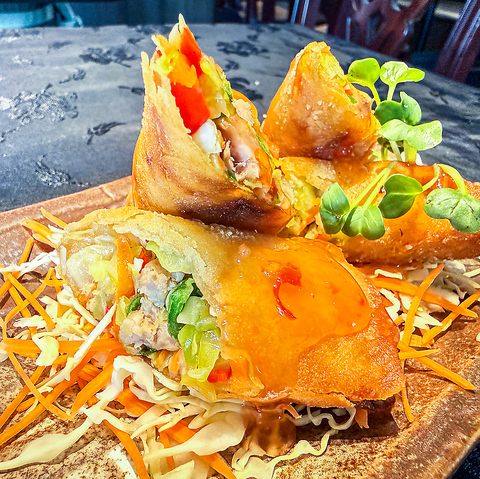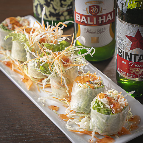 生野菜たっぷりの生春巻き 女性だけでなく男性にも人気! 甘辛いスィートチリソースをたっぷりつけてお召し上がりください
