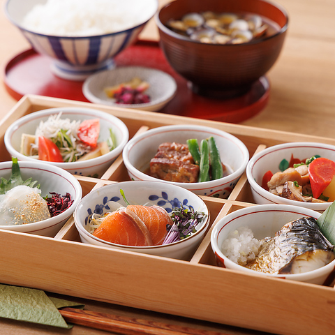 一日の始まりにふさわしい贅沢。彩り豊かな小鉢が並び、体に染み渡る優しさと満足感が同居する限定定食。