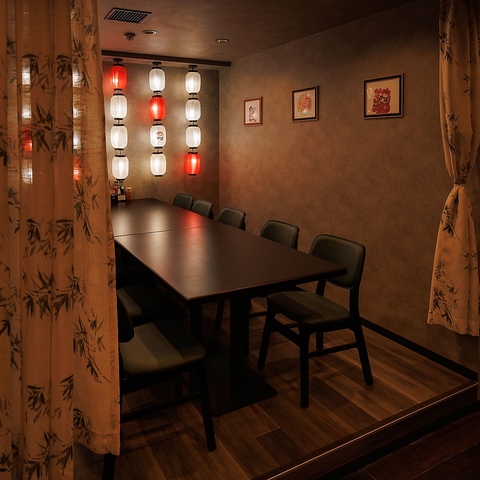 8~10名様でご利用いただける個室席。ディナーのコース利用や接待などにもぜひ。多彩な香辛料の独特な香りをアテに、お酒やツマミ・本格火鍋を楽しめるゆったりした席です。