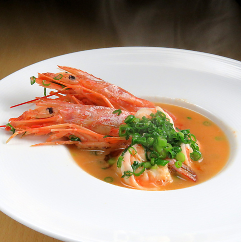 大ぶりの海老を贅沢に使用し、お酒の力で旨味を凝縮させた逸品です。テーブルに置かれた瞬間に広がる芳醇な磯の香りと、後から追いかけてくるバターのコクが食欲をそそります。プリッとした身の食感とともに、海老の出汁が溶け込んだ濃厚なスープも絶品。お酒の合間に、心まで温まる芳醇な香りと味わいをご堪能ください。