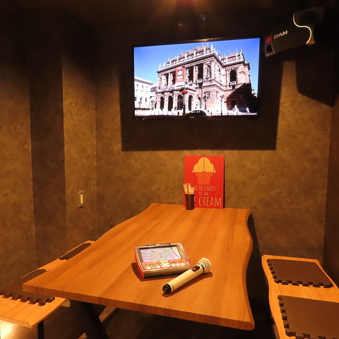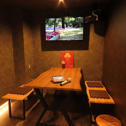 ゆったりと寛げる木目調のテーブル席は、最新のカラオケ設備を完備したプライベート空間です。本格的な郷土料理や自家製スモークを味わいながら、周囲を気にせず歌って笑って、大切な仲間との時間を心ゆくまでお愉しみいただけます。移動の手間なく二次会まで一軒で完結できる、幹事様も安心の万能空間です。