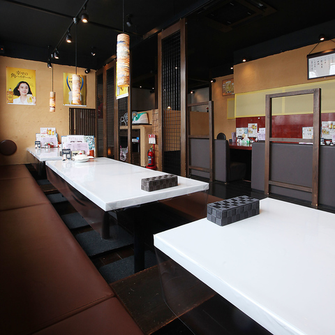 明るく清潔感のあるテーブル席は、少人数から大人数まで幅広く対応可能です。レイアウトを自由に変更でき、テーブルを結合することで団体様の宴会にも柔軟に対応いたします。広々とした開放的な空間でゆっくりお過ごしください。