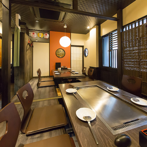 テーブル席には鉄板を設置し、どの席でも鉄板料理の魅力を存分に楽しめるようにしています。目の前でジュージューと焼き上がる音や香りを楽しみながら、できたての料理をそのまま味わえます。