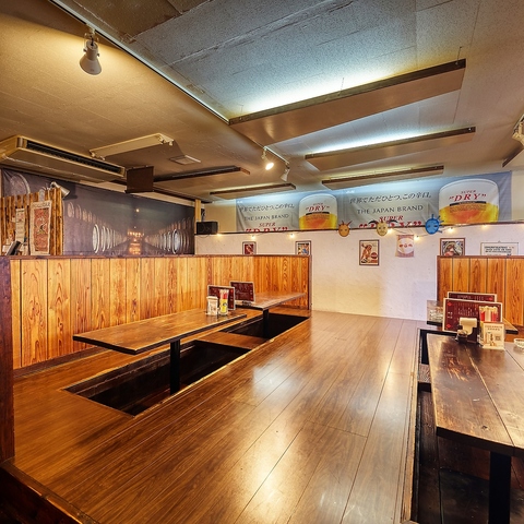 掘りごたつの座敷席でゆったり宴会。足を伸ばして楽しめる快適空間です。