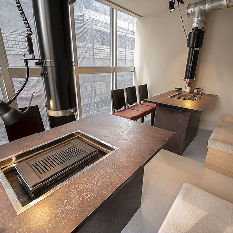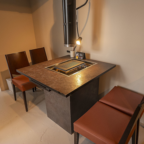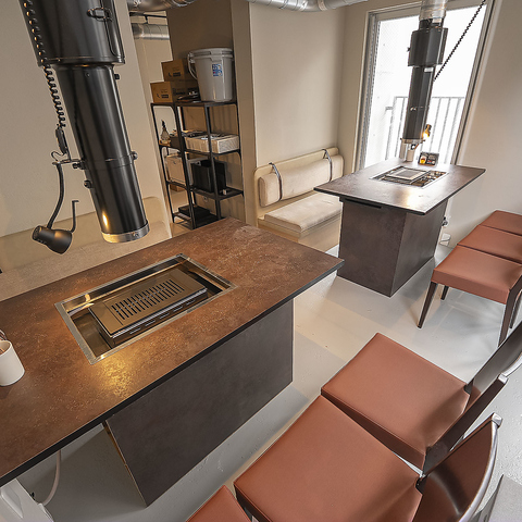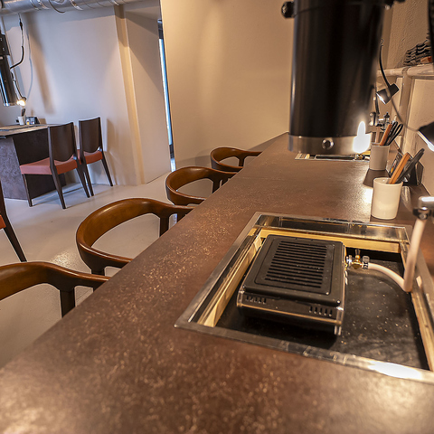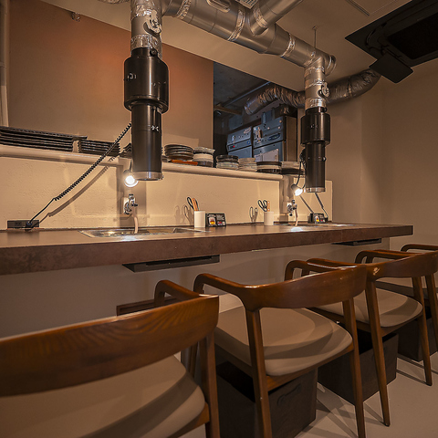 お一人様でも気軽に使えるカウンター席をご用意。煙をしっかり吸う換気ダクトを完備しており、仕事帰りのサク飲みや軽い焼肉にも最適です。落ち着いて過ごせる人気の席です。