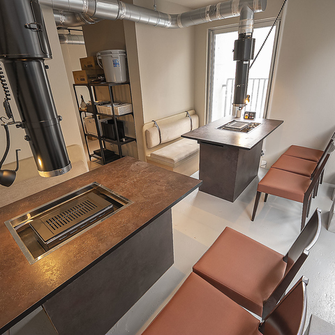 【カウンターで気軽に焼肉を】カウンター席には換気ダクトを完備し、煙を気にせず快適に焼肉を楽しめる環境をご用意。1名様での気軽な焼肉はもちろん、2~3名様での軽い食事やサクッと飲みにも最適です♪お席に関するご相談やご予約は、お電話にて随時承っておりますので、ぜひお気軽にお問い合わせください◎