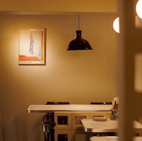 【アメリカンダイナー×カリフォルニア空間 】白を基調にした店内は、アメリカンダイナーの懐かしさとカリフォルニアの開放感が融合したお洒落な空間。照明やアート、家具の細部にまでこだわりが詰まっており、居心地の良さと非日常感を演出。デートや女子会にもぴったりです。