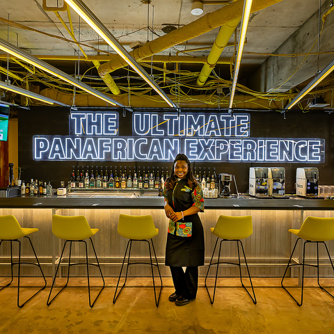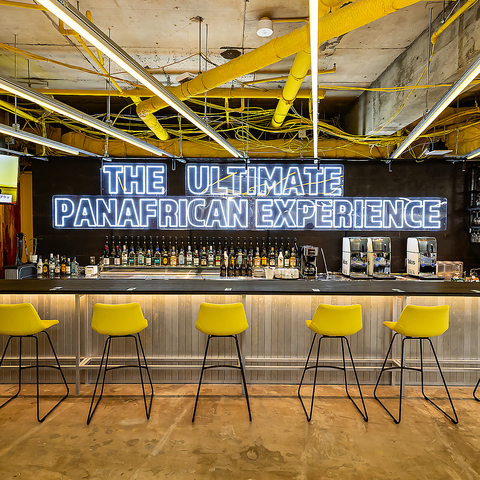 万博アフリカ館のスピリットを継承しつつ、モダンにアップデートされたBARエリア。肩肘張らずに過ごせる開放的な雰囲気ながら、細部にまでこだわったインテリアが特別な夜を演出します。スタッフとの会話を楽しんだり、最新のアフリカカルチャーに触れたりと、訪れるたびに新しい発見がある特等席です。