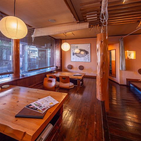 「旨い酒と旨い魚を楽しみながら、のんびり過ごせる時間」が当店のコンセプト。がやがやしすぎない程よい賑わいは、大切な時間をゆったりと過ごさせてくれます。全席掘りごたつで、足を伸ばしてリラックスできるのもポイント。会話が弾む距離感と、ほっと落ち着く和の設えです。