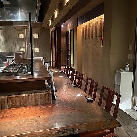 【職人の技を間近に感じられるカウンター席】炭火の香ばしさや焼き上がりなど調理の臨場感が味わえます。一人飲みはもちろん気心知れた相手との利用にも心地よい距離感!