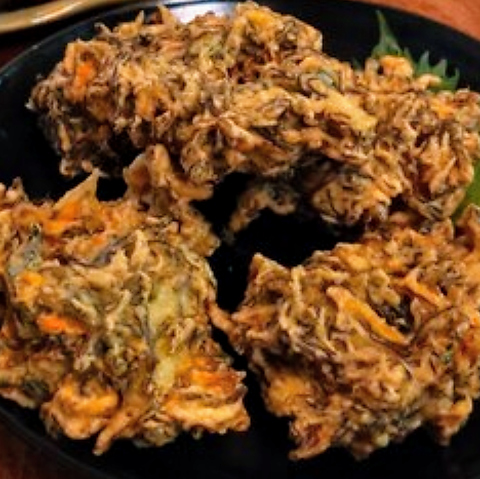当店の1番人気♪野菜も加えたかき揚げをシークワーサー醤油で召し上がれ!