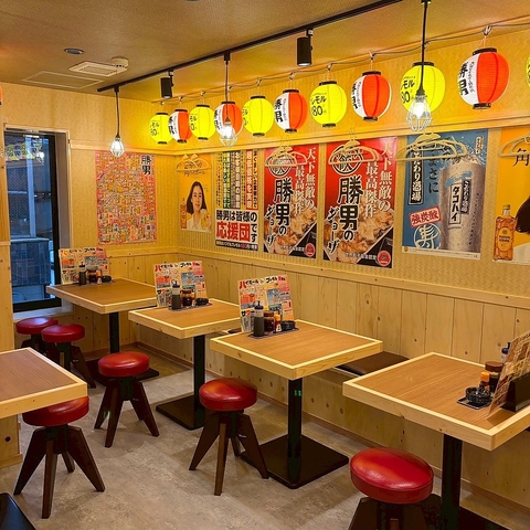 【京都河原町駅から徒歩約1分】好立地で各種宴会に最適!提灯が灯る賑やかな店内は、全席テーブル席で、友人との飲み会から、グループでの打ち上げ、会社宴会まで、勝男ならではの活気ある空間で楽しい時間をお過ごしいただけます。少人数はもちろん、グループ宴会や団体利用も大歓迎です♪