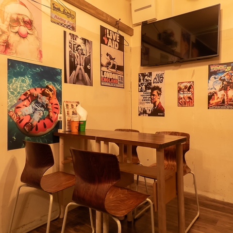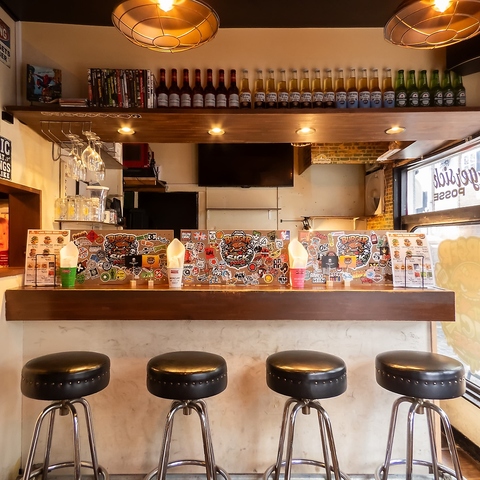 一歩足を踏み入れれば、そこはアメリカのダイナーを彷彿とさせるポップでエネルギッシュな世界観♪壁一面に飾られたヴィンテージポスターやレトロな看板が賑やかで楽しい雰囲気を演出しています◎ステッカーが所狭しと貼られたカウンター席は、眺めているだけで会話が弾むこと間違いなし!ハンバーガーを片手に最高のひとときをお過ごしください