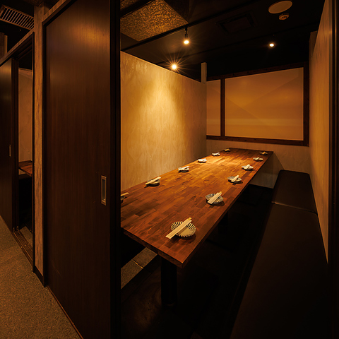 9~12名様向けの和モダン個室!広めのテーブルでゆったり座れるので、会社宴会やグループ飲み会、同窓会にもピッタリ!気兼ねなく会話も楽しめて、大人数の宴会でもゆったりとくつろげます!