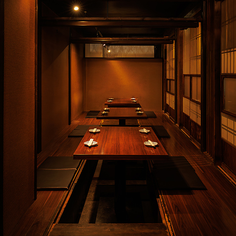 和の趣き溢れる掘りごたつ個室!足を伸ばしてくつろげるので、会社宴会・歓送迎会・女子会・合コン・友人との飲み会など様々なシーンに最適!ゆったりした空間で料理やお酒をじっくり楽しめます!