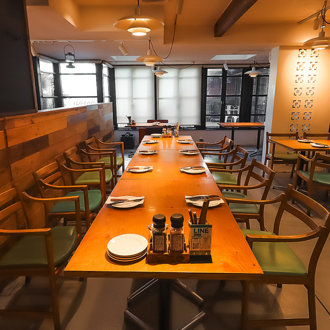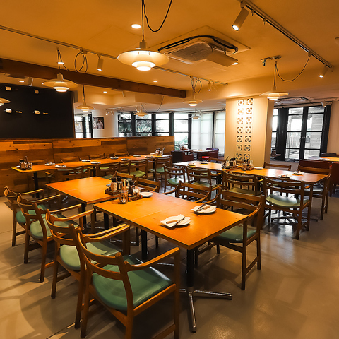 温かみのある木目調のインテリアに囲まれた店内には、使い勝手の良いテーブル席をご用意しております。少人数でのご利用から、友人同士の気軽な会食まで、どなた様も肩肘張らずに過ごせるのが魅力です。落ち着いた照明が灯る空間で、厳選素材を使用したグリル料理を囲みながら、会話が弾む楽しい時間を提供します。