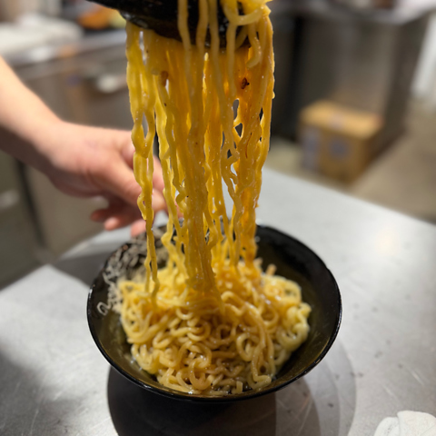 お店の看板メニュー『まぜそば』。醤油または辛味噌からお選び頂けます。ご来店の際は、ぜひご賞味下さい!
