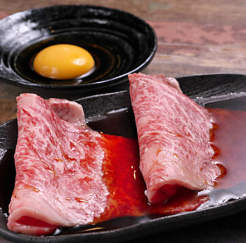 選び抜かれた国産黒毛和牛の薄切りを、サッと炙って仕上げる当店自慢の逸品です。お肉の香ばしさと上質な脂の甘みが引き立つ状態で、濃厚な卵にくぐらせてお召し上がりください。口の中でとろける柔らかな食感と、まろやかな卵のコクが織りなす極上のハーモニー。贅沢な和牛の旨味を心ゆくまで堪能できる珠玉の一皿です。