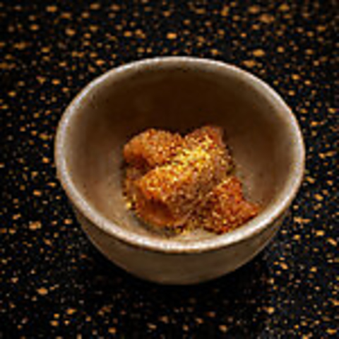 余市産の出汁と辛さが引き立つ明太子に、相性の合う柚子を添えました。赤坂で余市の明太子が味わえる店はなかなかありません。