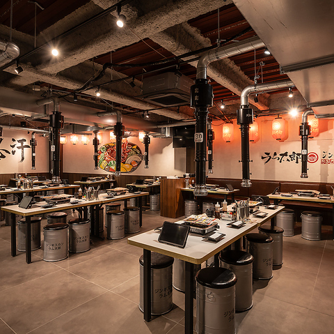 【各種ご宴会に◎】全180席の広々空間!大人数のご宴会にもピッタリ!全卓に専用の排煙ダクト完備で、煙や匂いを気にせず快適にお過ごしいただける大衆ジンギスカン酒場です。