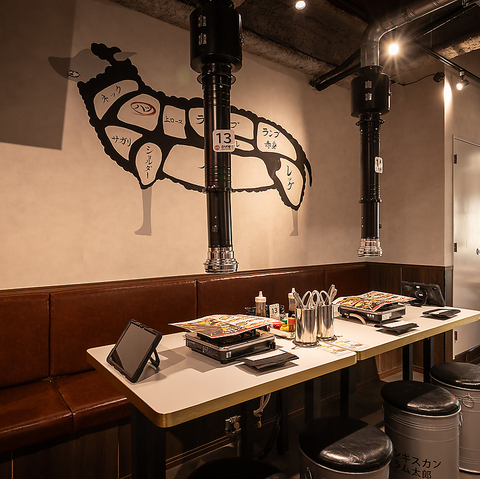 全卓に専用の排煙ダクト完備で、煙や匂いを気にせず快適。お仕事帰りのふらっと1杯と、旨いジンギスカンを当店でお楽しみください。テーブル席は少人数でのプライベート利用から、会社の大人数宴会まで様々なシーンでご利用いただけます♪