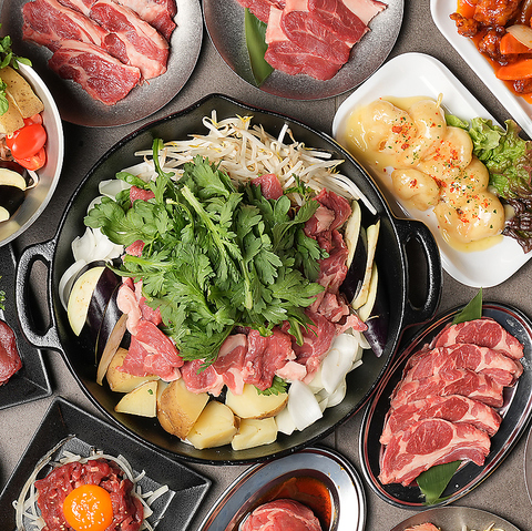 自慢の北海道ジンギスカンは熟成塩〆ラム、ラムチョップ、飲めるジンギスカン、ラムホルモン、厚切りラムタン...ラム肉の種類を豊富にご用意。部位ごとに味も違うので食べ比べがおすすめ!食べ放題プランは、約70品全メニュー食べ放題!酒の肴、お野菜、肉刺し、フライ、ガチ中華逸品メニュー、ご飯物、麺もの、甘味まで。