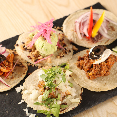 料理はアラカルトで自由に注文できる単品飲み放題が人気。お好きなタコスや前菜を堪能しながら、種類豊富な充実したラインナップのドリンクとともに過ごせます。飲み放題は2000円(税込)で、洗練された時間をお楽しみいただけます♪