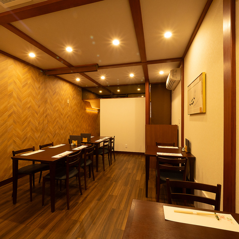デートや大切な接待にも最適な、半個室を完備した落ち着いた内装が魅力です。木の温もりを感じる和モダンな空間は、周囲を気にせずゆったりとお食事を楽しみたいシーンにぴったり。15席というプライベート感溢れる規模のため、細やかなサービスが行き届きます。特別な日の会食を、洗練された雰囲気の中で演出いたします♪